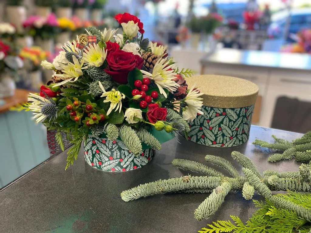 Fresh flower festive hat box - From £35