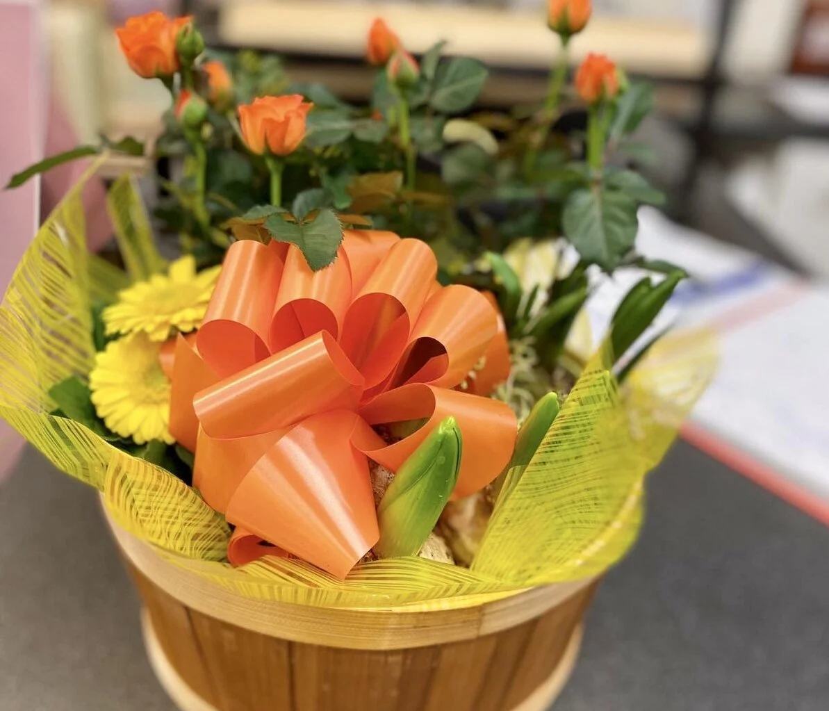 Our planted baskets include a mixture of individually potted seasonal indoor and outdoor plants.